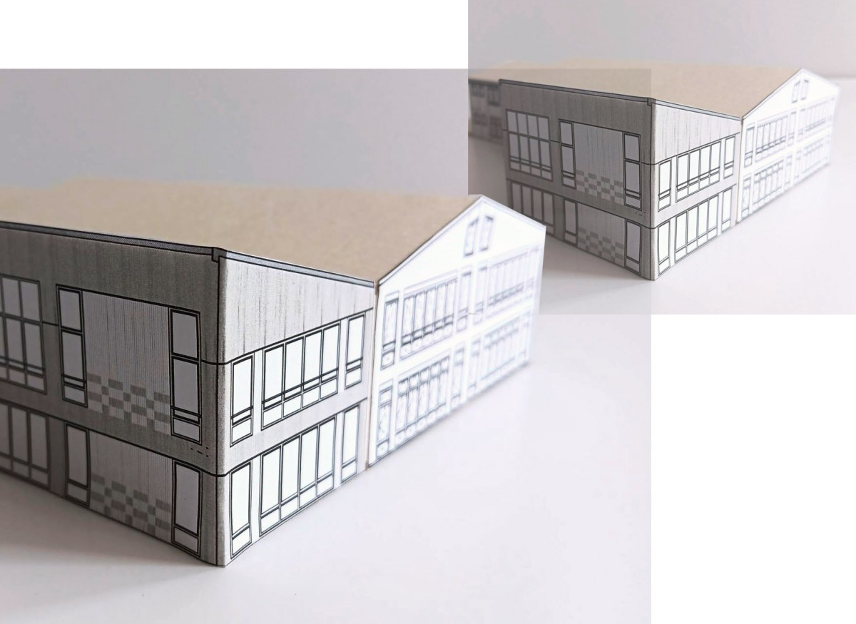 Wir bauen die Schule in ihrer typischen Kubatur weiter und setzen die Dachlandschaft fort. Die Pultdächer der drei Anbauten orientieren sich zum Schulhof hin und öffnen sich als einladende Geste.